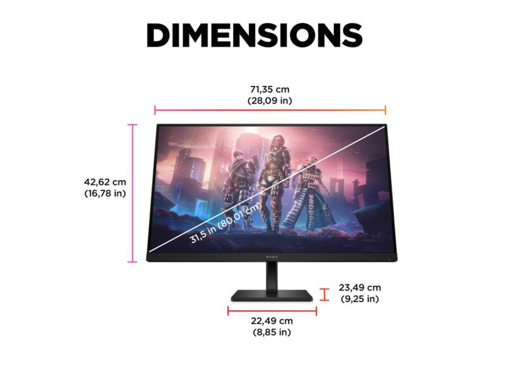 OMEN 32q QHD1  Flat IPS 165Hz31,5,QHD,1ms,400CD,165Hz,1000:1,DP,2xHDMI,Height,Pivot,2godine garanci